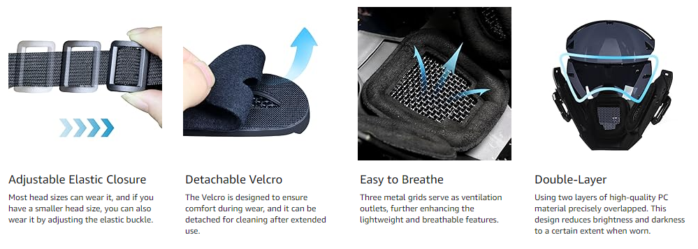 - 【Comfortable and Breathable】: The lower half features a sponge-lined band, ensuring a snug fit without discomfort.The mouth section incorporates a breathable mesh, preventing fogging and ensuring effortless breathing.